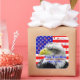 De grands autocollants qui sont audacieux et lumineux et dans des couleurs vives. Ajoutez facilement n'importe quel texte personnalisé à ces étoiles de tournage illustrées rouges, blanches et bleues et à ces autocollants de design rayés avec une superbe photo d'un aigle américain chauve au milieu, avec un arrière-plan du drapeau américain. Il s'agit d'autocollants publicitaires et de vente au détail, ou encore de nouveaux cadeaux d'électeur d'aigle ou de cadeaux d'électeur le jour de l'élection. Obtenez beaucoup de ceux-ci pour avoir en main pour le jour commémoratif, la fête des anciens combattants, le 4 juillet, la fête du travail et le jour de l'élection. Montré est l'autocollant rond populaire. Ajoutez du texte ou supprimez simplement l'exemple de texte si nécessaire. Faites de belles enveloppes et des faveurs spéciales aussi!