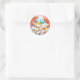 Stickers avec de mignons chats japonais chanceux faisant la fête sous les fleurs de cerisiers au printemps avec le Mont Fuji dans l'arrière - plan.Il ya une poupée Daruma dans l'arrière - plan aussi.