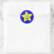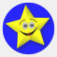 L'autocollant de récompense de l'enseignant amusant fait en rond, avec un arrière - plan bleu vif et les graphiques d'une grande étoile jaune souriante aux yeux. Personnalisez pour ajouter le texte souhaité. Idéal pour tout enfant d'âge scolaire.