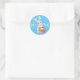 This round sticker is shown in a festive Easter Bunny with eggs print in a lovely sky blue colour.