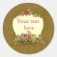 Arrière - plan doré, effet fleuri en forme de vase, où vous pouvez ajouter votre propre texte. Joli stickers fleuris que l'on peut customiser ! Parfait pour sceller les notes de remerciement, les invitations de mariage, enregistrer les cartes pour notes de date, les annonces, tout ce que vous pouvez penser. Ou ajoutez vos initiales pour de jolis autocollants monogrammes. Changez la couleur de l'arrière - plan, ajoutez du texte, rendez-le personnel !
