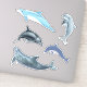 Cinq autocollants en forme de dauphin à utiliser lors d'une fête d'anniversaire, d'une fête d'été ou pour le scrapbooking fun. Les dauphins en bleu et gris nagent et sautent sur des feuilles autocollantes qui viennent dans une variété de tailles. Ajoutez aux sacs de fête d'anniversaire, ou donnez-les dans la salle de classe.