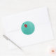 Une cerise rouge volante traverse un champ bleu-vert abstrait. Utilisez ces autocollants comme scellés d'enveloppe pour les cartes Flying Cherry Note correspondantes!