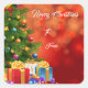 Cet autocollant de marque cadeau de Noël est montré avec un arbre festif et des imprimés cadeaux. Customiser cet objet ou acheter tel quel. Image du stock vecteezy.com