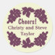 Ces étiquettes de vin modernes disposent de grappes de raisins pourpres et du mot "Cheers!". Customisez-les pour inclure votre nom pour une touche personnelle sur vos cadeaux de vin. Graphiques de Sanquenetti Design @ MyGrafico.com.
