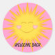 Stickers étudiants, "Bienvenue de retour". Joyeux soleil souriant avec des joues du coeur. Customisez le texte à vos spécifications. "Bon Travail", "Super Étudiant", "Bien Fait", "Étudiant étoilé, Joyeux Anniversaire, vous décidez.