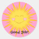Autocollants pour étudiants / Grand travail. Joyeux soleil souriant avec des joues du coeur. Customisez le texte à vos spécifications. "Bon Travail", "Super Étudiant", "Bien Fait", "Étudiant étoilé, Joyeux Anniversaire, vous décidez.