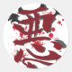 Stickers Mal Kanji. C'est le symbole kanji japonais pour le mal, et est écrit comme "aku" en anglais. Dans les histoires japonaises, et d'autres ouvrages, ce symbole est utilisé pour décrire quelque chose d'extrêmement sombre et sinistre. Le kanji pour le mal a un regard très distinct dessus, mais j'ai ajouté une queue, des ailes foncées et des cornes pointues pour qu'il soit plus reconnaissable à première vue.