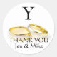 Stickers de mariage Favor Merci Anneaux d'or et Monogramme. Customisez vos informations personnelles et votre message