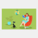 Ces Stickers Femme de Lecture Rétro présentent un style années 60, art minimaliste, dessin animé d'une femme qui a ses priorités dans l'ordre. Ce délicieux ver de livres est entrainé dans un vrai tourneur de page. La brunette, toute en forme, porte une robe d'aqua et des lunettes rouges, tout en tenant un livre bleu. Elle est assise dans une chaise confortable aux oeufs rouges. Devant elle, un chat noir élégant dans un col turquoise profite de la tranquillité qui vient de vivre avec un bibliophile. Femme et chat sont tous deux dans une élégante chambre verte. Au-dessus, une lampe pendentif kitsch dans les tons jaune et turquoise. Sur le côté, un plante luxuriant, tropical, en pots, est installé dans un aqua fleuri. Kitty, si vous avez besoin de quelque chose, vous devrez attendre jusqu'à ce qu'elle finisse ce chapitre !