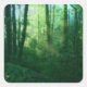 Les rayons du soleil matinal se répandent dans une forêt estivale d'une verdure éclatante, avec des arbres massifs recouverts de lierre et une épaisse couverture de sous-bois. Une photographie numériquement manipulée pour donner aux feuilles de la vigne, de la brume bleu-vert, des rayons dorés et des arbres verts printaniers une qualité de rêve.