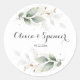 Sticker blanc vert Roses Botanique Mariage Classic rond