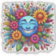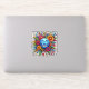 Une collection vibrante d'autocollants éclate de couleurs, montrant une joyeuse lune bleue entourée d'un éventail de fleurs et de feuilles verts luxuriants. Le design capture un esprit ludique, parfait pour égayer notes, lettres ou messages numériques.