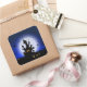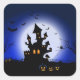 Grand autocollant carré montré dans une impression hantante de scène citrouille Halloween. Customiser cet objet ou acheter tel quel. Image du stock freepik.com