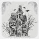 Grand autocollant carré montré dans une effrayante impression maison hantée Halloween. Customiser cet objet ou acheter tel quel. Image du stock freepik.com