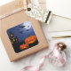 Grand autocollant carré illustré d'une empreinte citrouille hantante Halloween. Customisez cet objet ou achetez tel quel. com.