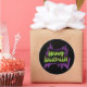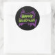 Autocollant de forme ronde en noir avec une impression Halloween joyeuse. Customisez cet objet ou achetez tel quel.