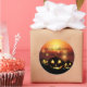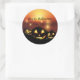 Autocollant rond montré avec un imprimé citrouille d'halloween festif. Customisez cet objet ou achetez tel quel. com.