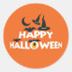 Autocollant rond montré avec une empreinte joyeuse d'halloween festive. Customisez cet objet ou achetez tel quel. com.