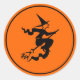 Un autocollant rond est affiché avec une empreinte sorcière Halloween. Grande taille affichée Personnaliser cet article ou acheter tel quel. com.