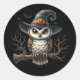 Chouette d'Halloween éffrayante dans un chevalier casquette sorcière. Autocollants à thème Halloween. Chats, chauve-souris, Citrouilles, baguettes et chaudrons. Idéal pour les invitations Halloween et stationnaire. Idées d'Halloween.