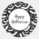 Un autocollant rond grand est affiché dans une impression de chauves-souris éffrayantes Halloween. Customisez cet objet ou achetez tel quel.
