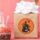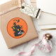 Grand autocollant rond montré avec une empreinte Halloween hantée maison. Customisez cet objet ou achetez tel quel. com.