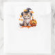 Cet autocollant carré est montré avec une impression d'art de chaton cutie Halloween. Grande taille affichée Personnaliser cet article ou acheter tel quel.