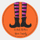 Autocollant rond montré avec une empreinte d'art des jambes sorcières Halloween, texte dit Witch Better Have Candy. Customisez cet objet ou achetez tel quel. Image stock