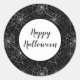 Petit autocollant rond montré dans une effrayante impression de toiles d'araignée d'Halloween. Customiser cet objet ou acheter tel quel. Image du stock freepik.com