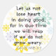 Stickers avec Galates 6:9 verset Écriture. Ne nous décourageons pas de faire le bien, car en temps voulu, nous récolterons si nous ne nous lassons pas.