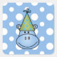 Nos autocollants Blue Hippo correspondent à nos invitations d'anniversaire Blue Hippo et timbres-poste! Mignonne, amusante et colorée, présente un hippopotame bleu portant un casquette de soirée pois sur un arrière - plan de pois bleu et blanc.