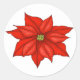 Autocollant de jour férié montré avec un imprimé fleur de poinsettia rouge festif. Customiser ou acheter tel quel.