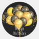 Cet autocollant de forme ronde de petite taille est présenté avec une impression festive de ballons d'anniversaire heureux. Customisez cet objet ou achetez tel quel.