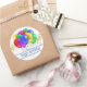 Cet autocollant rond de grande taille est présenté avec une impression festive de ballons d'anniversaire heureux. Customisez cet objet ou achetez tel quel.