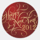Joyeux Nouvel An - Élégante calligraphie or classique avec des parchemins sur l'arrière - plan rouge de Noël - étiquettes tendance et élégants collants sont parfaits pour sceller les enveloppes de cartes de voeux de vacances et mettre sur le Nouvel An et les faveurs de fête de Noël. Consultez la boutique pour obtenir des articles de fête de style sophistiqué et de coordination unique. Cartes de correspondance, invitations, affranchissement et cadeaux disponibles en galerie.