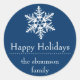 Snowflake Happy Holidays Favor Stickers / Étiquettes (Dark Navy Blue / White)...Ces étiquettes de remerciement d'hiver amusants sont l'ajout parfait à votre remerciement faveurs pour votre fête de vacances d'hiver merveilleux. Que ce soit une fête de Noël, une fête d'Hanoukka, une fête de vacances non confessionnelle, ou juste un hiver amusant rassemblez ces autocollants de faveur sont parfaits pour toute occasion. Idéal pour la touche finale sur les cadeaux de Noël faits maison pour enseignants, amis, collègues, etc...beaucoup plus fantaisiste que ordinaire à des étiquettes ! Idéal pour un mariage d'hiver où la mariée et le marié ont leur mariage dans un chalet de ski ou un palais de glace. Le design comporte un flocon de neige amusant. Le texte est entièrement personnalisable. Voir WindyCityStationery.com pour notre gamme complète de étiquettes "Snowflake" dans une large gamme de couleurs ainsi que les timbres-poste "Snowflake" assortis, cartes de remerciement, étiquettes d'adresse de retour, enregistrer les dates et plus encore.