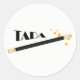 Illustration graphique de la baguette d’un magicien avec le texte TADA par l’artiste-designer Charmaine Paulson sur un autocollant.