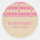Stickers de mariage Art Déco élégant et raffiné avec une bordure motif magenta déco sur un arrière - plan de texture de papier imitation. Ces stickers de mariage élégants sont un choix idéal pour un mariage moderne. Facile à customiser, il suffit d'ajouter les détails de votre mariage dans les champs de texte fournis. Cliquez sur "Customiser" pour trouver d'autres options de personnalisation.