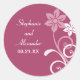 Stickers de mariage Dramatique floral simple mais élégant en Bourgogne avec une paire de jolies fleurs et tourbillons. Ce magnifique design conviendra parfaitement à votre mariage à thème fleuri ! Facile à customiser, ajoutez simplement les détails de votre journée spéciale dans le champ fourni. Des produits de coordination avec le même design sont également disponibles.