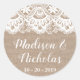 Utilisez nos autocollants pour enveloppes de burlap et dentelle pour décorer vos enveloppes mariages. Ces cercles d'autocollants classiques pourraient également être utilisés à de nombreuses autres fins. Le libellé est entièrement personnalisable - si vous avez besoin de changer la police, la couleur de police, la taille ou le placement des zones de texte, il suffit de cliquer sur le bouton "Cliquez pour customiser plus loin" pour changer ces choses. N'oubliez pas de consulter notre vaste sélection d'articles de coordination en parcourant la collection Rustic Burlap and Lace Mariage!