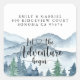 Elégante aquarelle rustique montagnes et forêt scène mariage retour adresse autocollants d'étiquette, avec des arbres bleus et verts luxuriants et des montagnes avec un texte script : laissez l'aventure commencer. Pour ceux qui aiment une ambiance de rêve romantique boisée pour leur cérémonie et célébration. Pour voir la collection complète des matériaux correspondants pour cette conception, veuillez visiter : https://www.zazzle.com/collections/rustic_forest_mountain_wedding-119965625201006103