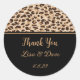 Un autocollant de remerciement mariage arrondi est montré dans un empreinte de léopard noir et safari. Customisez cet autocollant avec vos noms et votre date. Stock Imprimer freepik.com Stock Image freepik.com