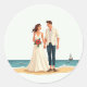 Comprend 20 petits autocollants sur une feuille. Scène romantique de mariage de plage avec un couple en tenue mariage, parfait pour les couples et la décoration mariage.