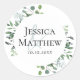 Personnalisez vos autocollants de mariage rustiques avec les noms de la mariée et du marié ainsi que leur date de mariage. Beau feuilles d'eucalyptus peints à la main et feuillage botanique dans les tons sauge, vert et bleu poussiéreux. Voir notre collection pour plus de belles créations dans ce thème mariage. Stickers Mariage Rustique Eucalyptus.