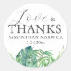 Ces autocollants de mariage sont dotés d'une monstère aquarelle et de feuilles de palmiers. Les mots "Amour & Merci" sont placés dans la typographie à la mode. Pour voir le thème mariage tropical correspondant, visitez le www.zazzle.com/dotellabelle Aquarelle art et design de Victoria Grigaliunas