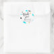 Polka Dot Blue & Gold Baby shower autocollants avec "merci !" en écriture manuscrite conviviale et grand bleu aqua, or bijoux et pois noirs flottant dans un design très moderne et à la mode. Personnalisé avec vos propres détails de fête !