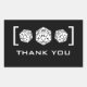 Ces Stickers Merci Mariage D20 Dice Gamer en noir et blanc sont parfaits pour le couple nerdy qui est tombé amoureux d'un intérêt commun dans les jeux de rôle et planifient un mariage sur le même thème. Ce design décalé présente un trio simple et minimaliste de dés à vingt côtés. Facile à customiser, il suffit d'ajouter les détails de votre mariage dans les champs de texte fournis. Cliquez sur "Customiser" pour trouver d'autres options de personnalisation.