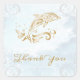 Scellez vos cartes de remerciement avec cet élégant mariage Dolphin d'or Merci sticker. Le design Sticker présente un dauphin de style métallique contre un arrière - plan muet des vagues océaniques orné d'élégants rouleaux. Autre papeterie mariage, fournitures de mariage, et faveurs de fête disponibles avec cette conception aussi.
