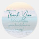 Ocean sunrise merci pour les autocollants pour les faveurs de mariage, sacs et boîtes. Des vagues qui s'écrasent et un ciel doré sont l'image arrière - plan. Pour toute réception de mariage à thème côtier, douche nuptiale ou autre événement pré-mariage, les autocollants ronds ou carrés sont disponibles en deux tailles. Le texte peut être personnalisé avec un court message à des invités tels que "Merci d'être ici aujourd'hui pour partager notre joie." Cette conception ne se transfère pas vers toutes les formes. Les autocollants s'imprimeront à mesure que vous les verrez. Gardez le libellé à l'écart des bords.